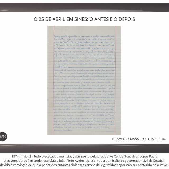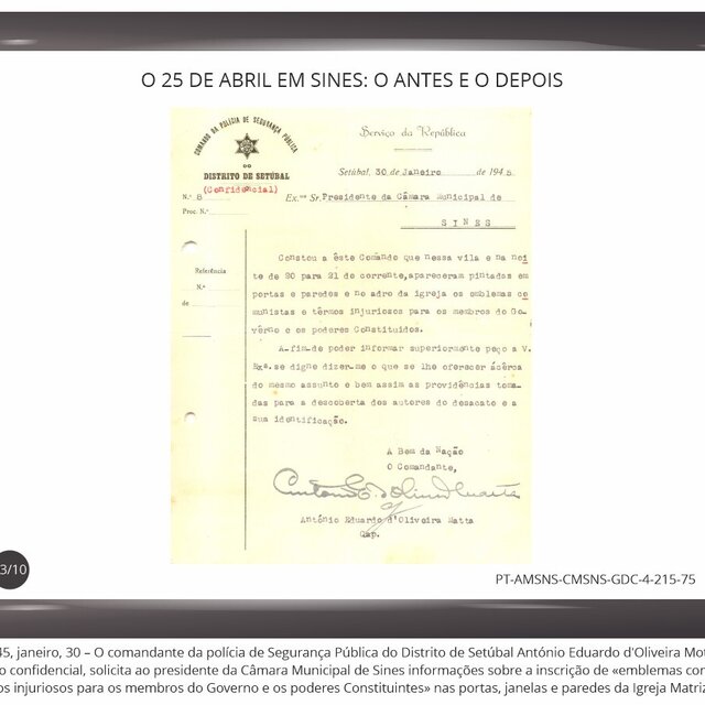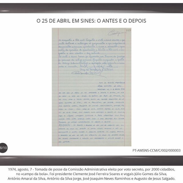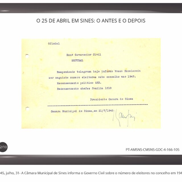 O Arquivo Municipal apresenta 10 documentos que dão prova e testemunho de como se viveu durante o Estado Novo e depois a Revolução dos Cravos no concelho de Sines.