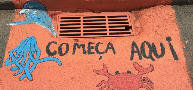 Pintura de sarjetas alerta para proteção dos oceanos