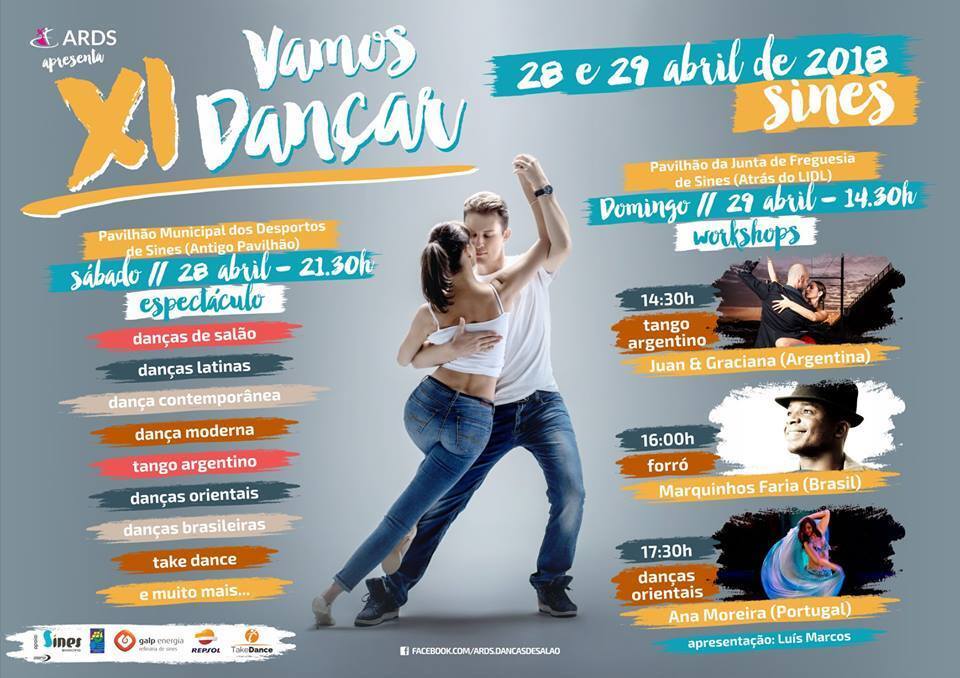 No domingo, 29 de abril, a partir das 14h30, no Pavilhão da Junta de Freguesia de Sines na ZIL 2 (atrás do LIDL), decorrem workshops de tango argentino (por Juan & Graciana), forró (por Marquinhos Faria) e danças orientais (por Ana Moreira). O custo do acesso é de 3 € por cada workshop ou 7,50 € pelo conjunto dos três workshops.
