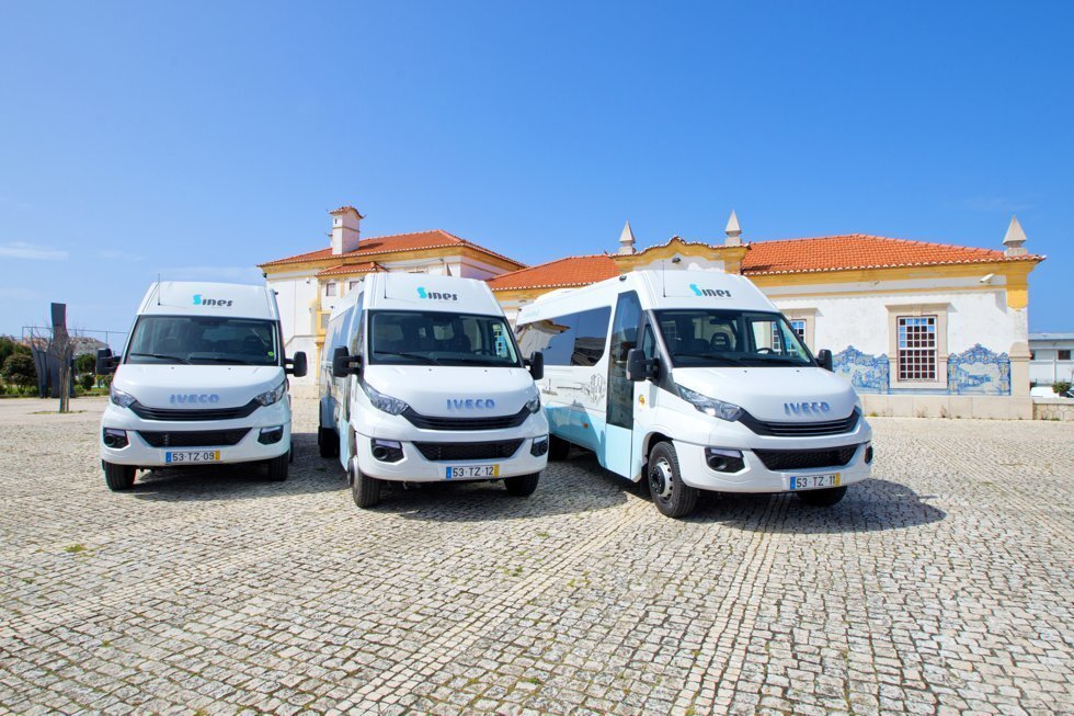 Nas fotos: três novos autocarros de 23 lugares para transporte escolar.