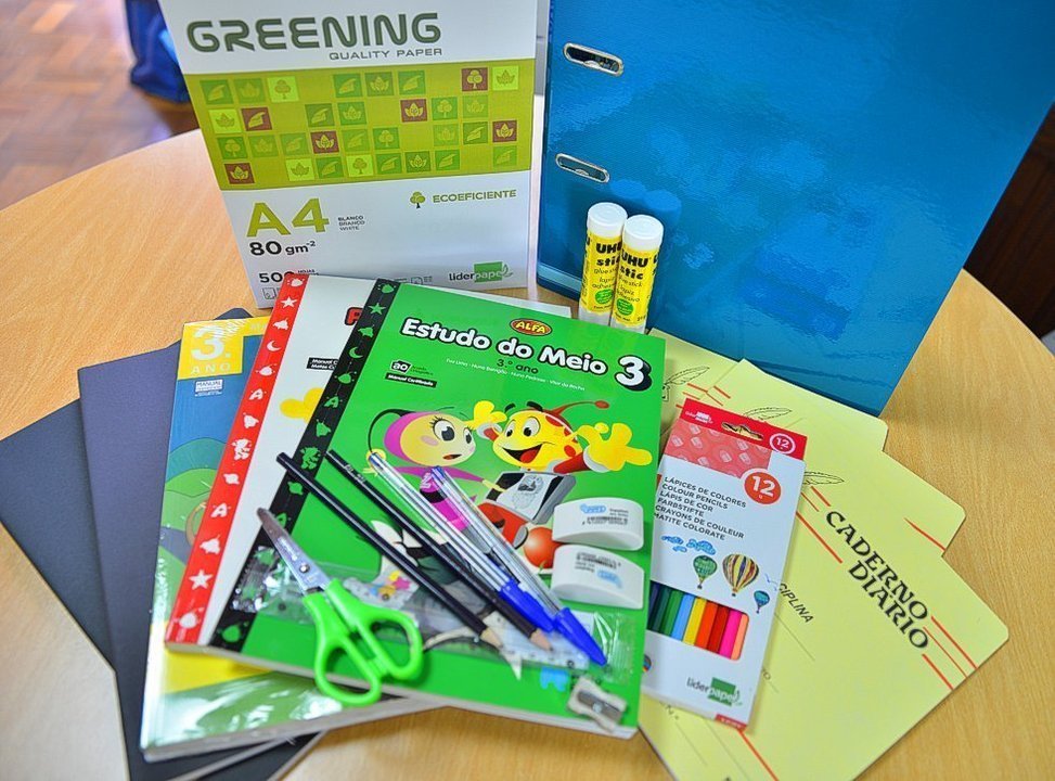 Escalão A: Isenção do valor total da senha de refeição (1.º ciclo), bem como material escolar e cadernos de atividades.