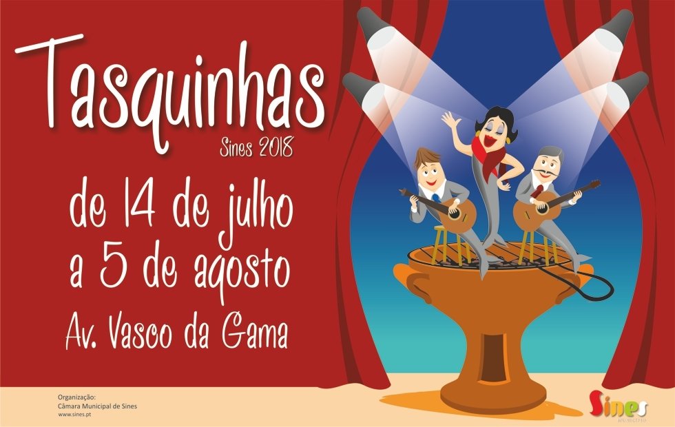 A edição de 2018 das Tasquinhas Sines realiza-se de 14 de julho a 5 de agosto, na Avenida Vasco da Gama, passeio marítimo da cidade de Sines, junto à Praia Vasco da Gama e ao porto de pesca local.