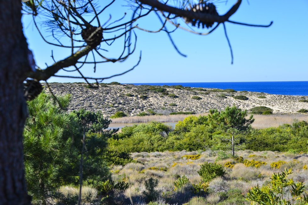 O percurso de regresso atravessa áreas de pinhal e dá também a oportunidade de subir ao ponto mais alto da área, onde é possível observar o enquadramento paisagístico, com o oceano, as dunas e as cidades (Santiago do Cacém e Sines) próximas.