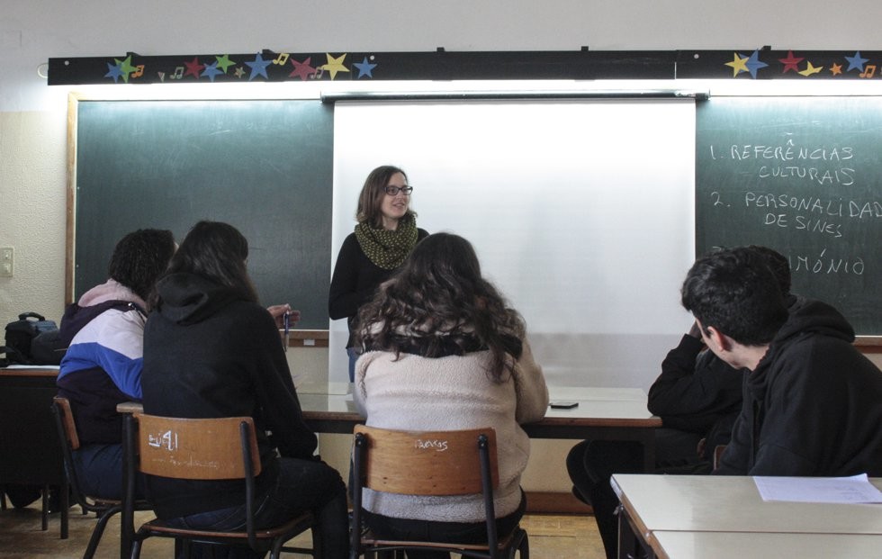 Os alunos discutiram quais as referências culturais de Sines na atualidade, as personalidades marcantes no concelho e quais são os principais elementos do seu património, a partir dos resultados do inquérito e das suas próprias respostas.