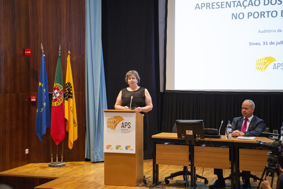 A ministra do Mar, Ana Paula Vitorino, anunciou hoje, no auditório da APS, a aprovação de investimentos no porto de Sines no montante de 1,2 mil milhões de euros.