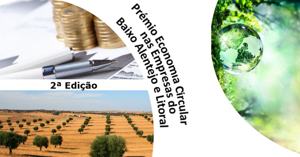 Com o objetivo de identificar boas práticas da economia circular nas empresas do Baixo Alentejo e Alentejo Litoral, O NERBE/AEBAL (Associação Empresarial do Baixo Alentejo e Litoral) e a CCDR Alentejo (Comissão de Coordenação e Desenvolvimento Regional do Alentejo) promovem a 2.ª edição do Prémio Economia Circular nas Empresas do Baixo Alentejo e Litoral.