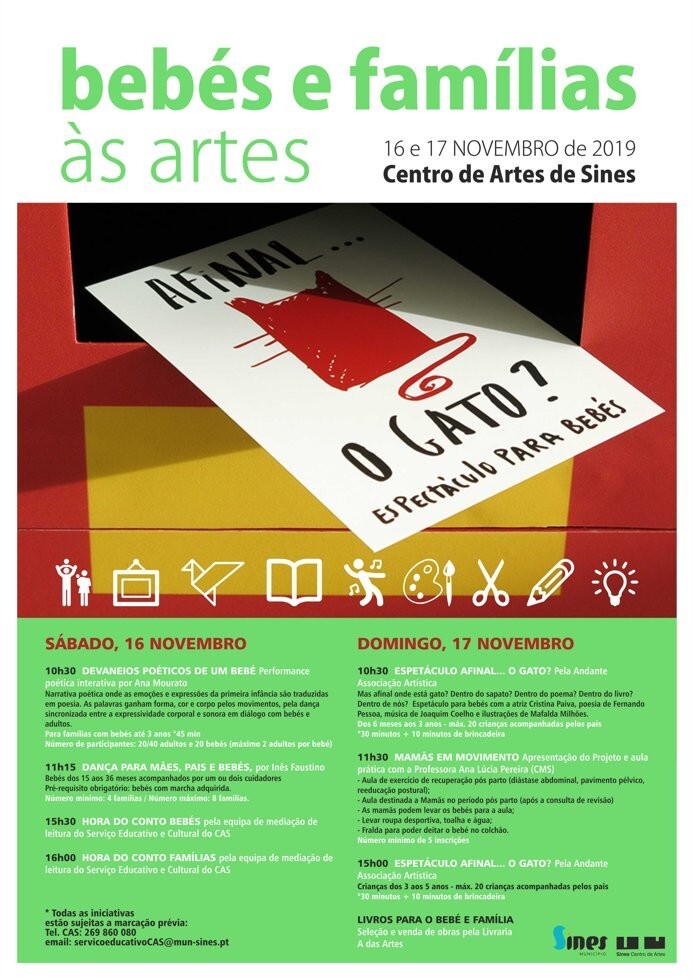 Nos dias 16 e 17 de novembro irá decorrer, no Centro de Artes de Sines, a iniciativa “Bebés e Famílias às Artes”, que vem proporcionar aos pais e às crianças uma viagem ao mundo das artes.