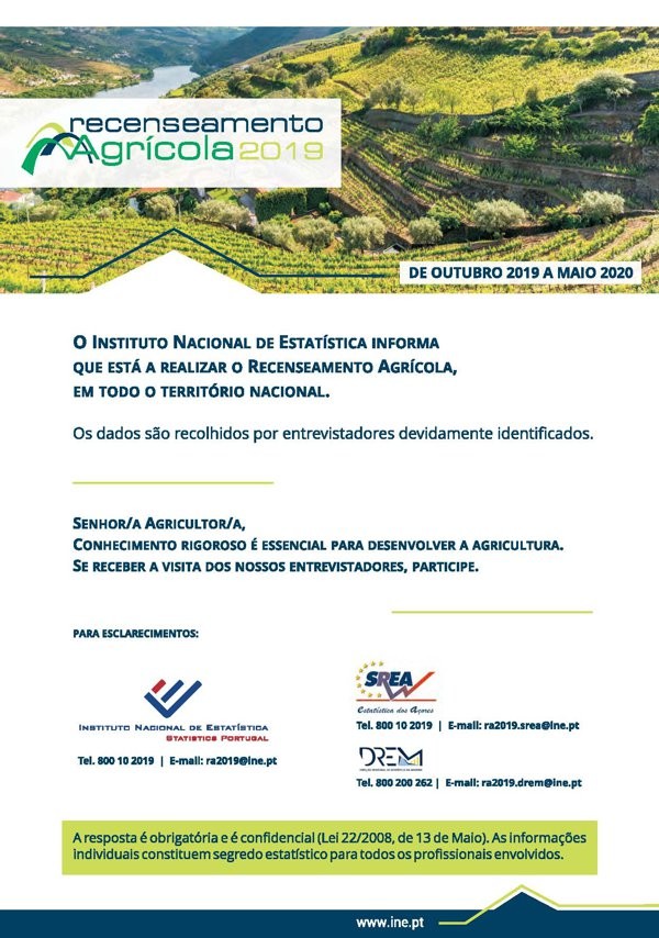 O Recensamento Agrícola está a decorrer, até maio de 2020, em todo o território nacional.