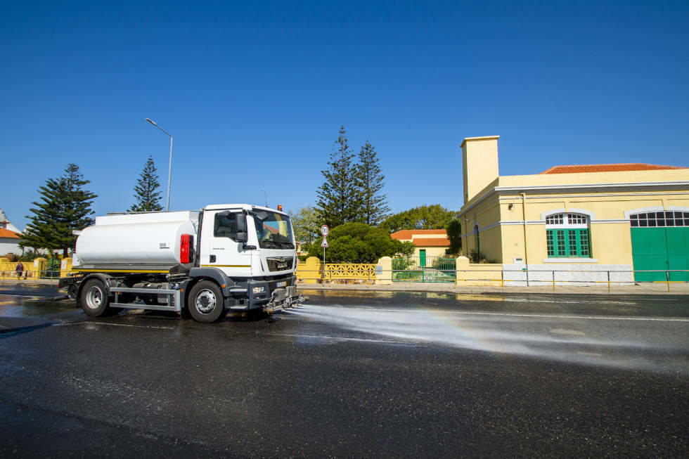 Um camião-cisterna com capacidade de 8000 litros, adquirido recentemente pela Câmara Municipal de Sines, foi mobilizado para reforço da lavagem das ruas.