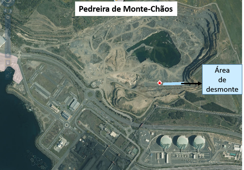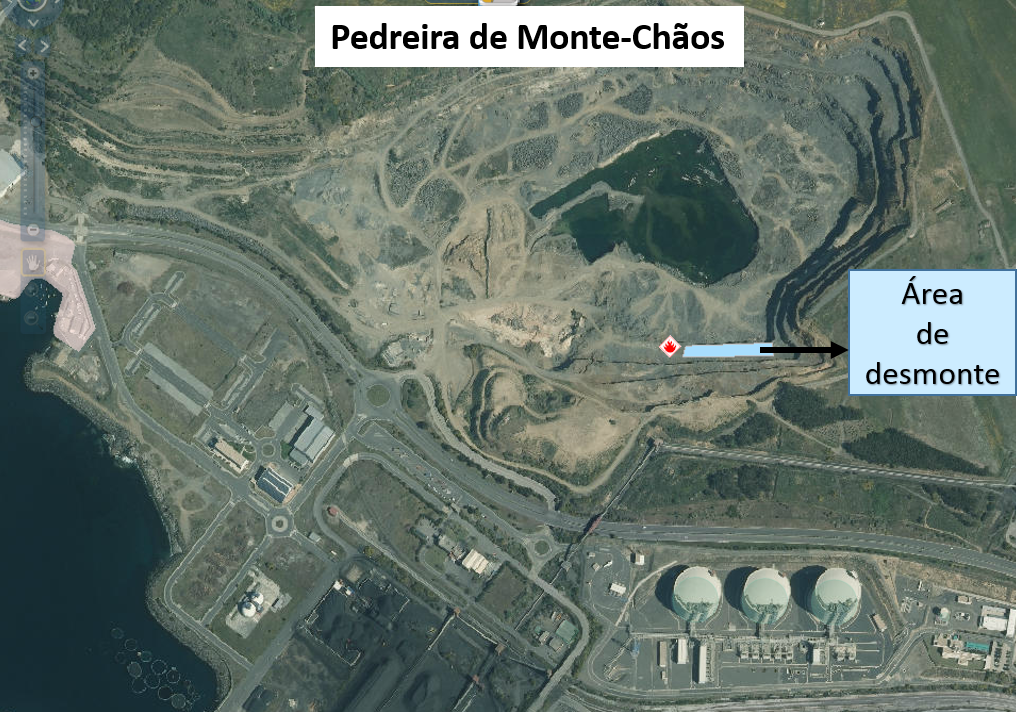 A APS - Administração dos Portos de Sines e do Algarve informou a Câmara Municipal de Sines que está previsto para terça-feira, 28 de abril de 2020, entre as 12h00 e as 13h30, um desmonte da pedreira do Monte Chãos na área assinalada na imagem.