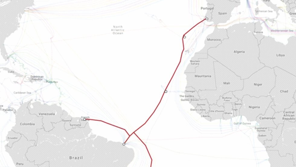 O cabo transatlântico EllaLink tem uma extensão de 10 119 quilómetros. Liga Fortaleza (Brasil) a Sines (Portugal), passando pelos arquipélagos de Cabo Verde e da Madeira. Oferece uma capacidade de transmissão de dados de 72 terabits por segundo, com baixa latência.