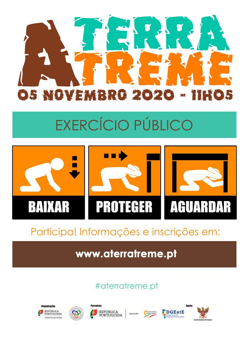 A ANEPC convida os cidadãos e as entidades a inscreverem-se em www.aterratreme.pt como demonstração do seu compromisso pessoal/institucional para com a causa da proteção e segurança, e como forma de apoio e expressão pública do seu envolvimento no exercício A TERRA TREME.