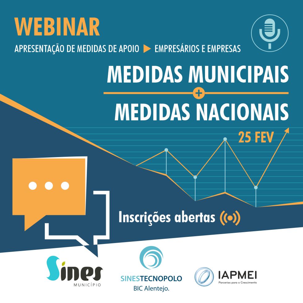 Com o objetivo de esclarecer sobre as medidas de apoio aprovadas pelo Município de Sines e as de âmbito nacional dirigidas às empresas e aos empresários, realiza-se um webinar no dia 25 de fevereiro, às 14h30.