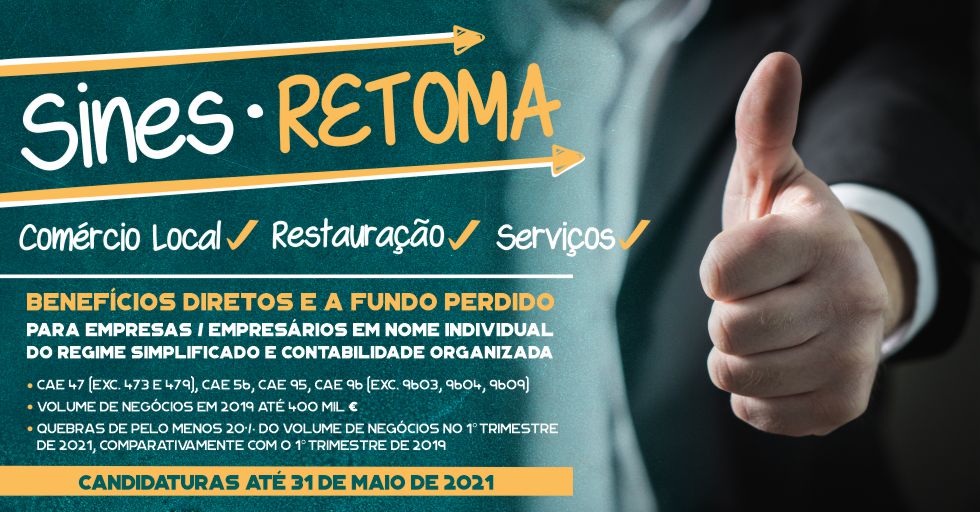 O Sines RETOMA vem na sequência dos programas Sines APOIA e Sines APOIA MAIS e destina-se a empresas e empresários em nome individual do regime simplificado e com contabilidade organizada.