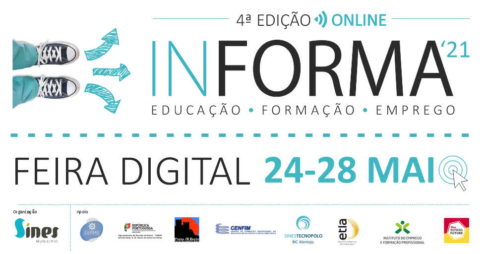 A Câmara Municipal de Sines organiza, de 24 a 28 de maio de 2021, a 4.ª edição da (In)Forma - Mostra de Educação, Formação e Emprego, que terá lugar, maioritariamente, em formato "online", no site https://informa.sines.pt.
