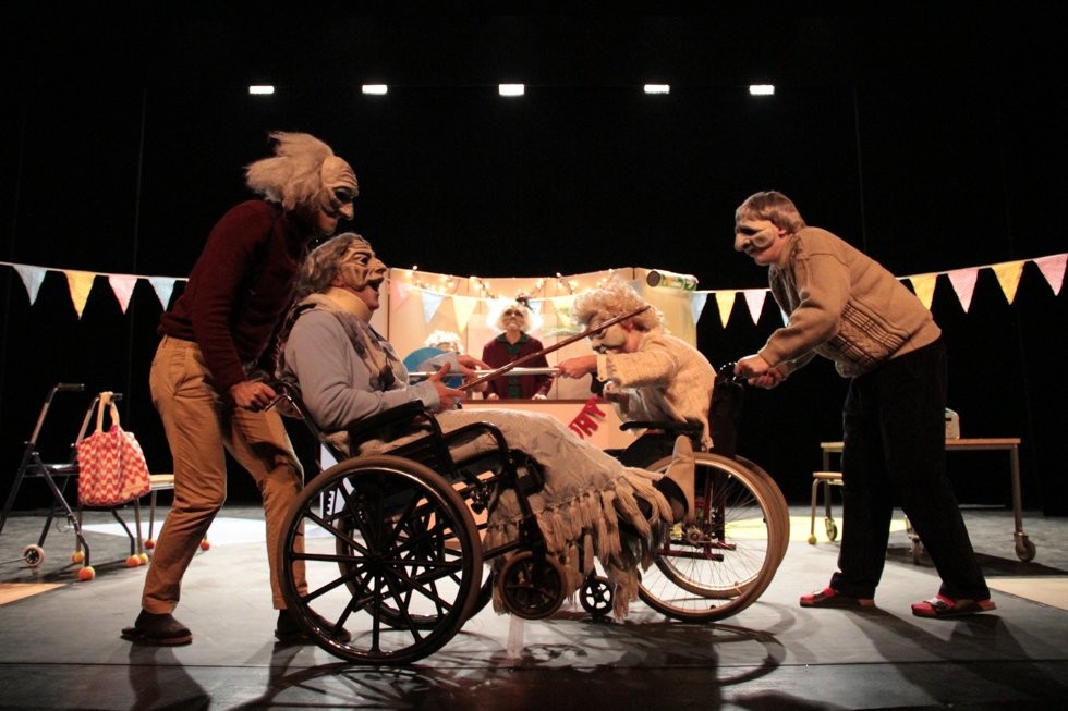 Entre o burlesco e o drama, este espetáculo questiona a velhice e o final da vida. Com subtileza, o coletivo questiona os tabus à volta da terceira idade e procura pelo humor e a técnica da máscara falar da intimidade e daquilo que faz com que sejamos crianças ou velhos, seres autónomos capazes de fazer escolhas.