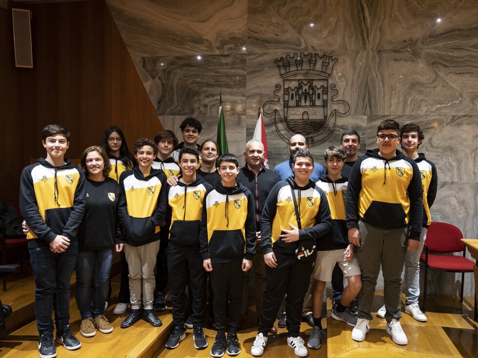 O vice-presidente e vereador do Desporto da Câmara Municipal de Sines, Fernando Ramos, recebeu hoje, nos Paços do Concelho, a equipa de sub-15 do Hóquei Clube Vasco da Gama (HCVG) que se sagrou campeã regional em fevereiro.