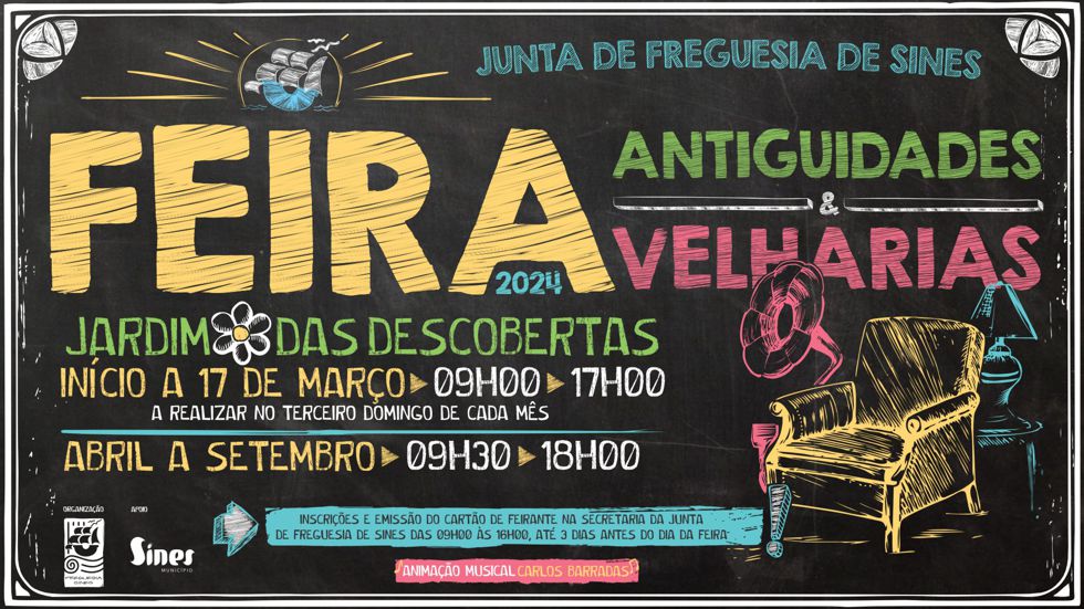 A Junta de Freguesia de Sines inicia em março o projeto de Feira de Antiguidades e Velharias, no Jardim das Descobertas.