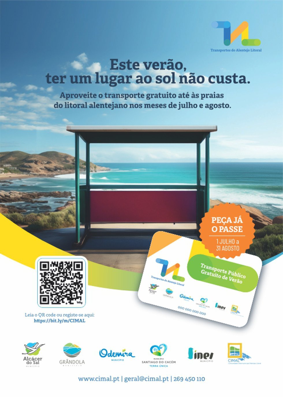 Este ano, será introduzido o uso de cartões passe para facilitar o acesso ao serviço. No caso de Sines, o cartão será específico para o percurso Sines - Praias de São Torpes e Porto Covo. Os interessados deverão preencher o formulário de adesão disponível em https://bit.ly/m/CIMAL, onde também poderão consultar os horários dos transportes.