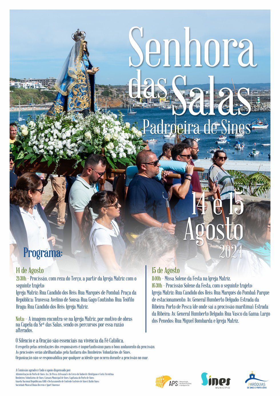 A Festa de Nossa Senhora das Salas é uma organização das Paróquias de Sines e Porto Covo, como o apoio de várias entidades, entre elas o Município de Sines.