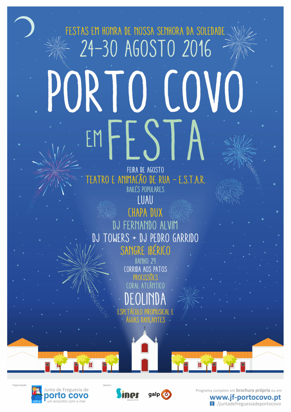 As festas, promovidas pela Junta de Freguesia de Porto Covo, têm o apoio da Câmara Municipal de Sines e da Galp Energia – Refinaria de Sines.