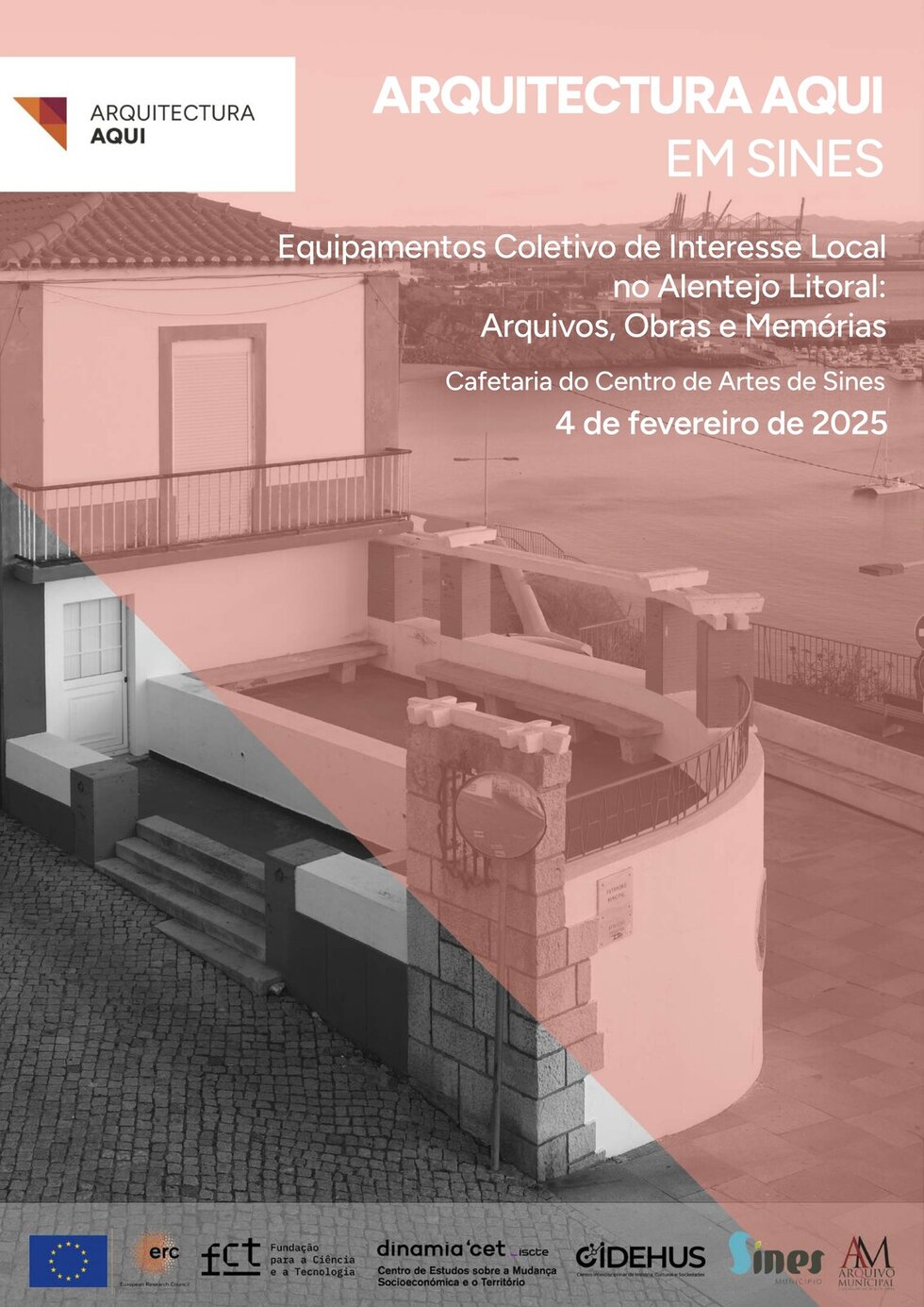 No dia 4 de fevereiro, entre as 10h00 e as 17h00, a Cafetaria do Centro de Artes de Sines acolhe o encontro "Equipamento Coletivo de Interesse Local no Alentejo Litoral: Arquivos, Obras e Memórias", dedicado à reflexão sobre a arquitetura de proximidade desenvolvida na segunda metade do século XX.