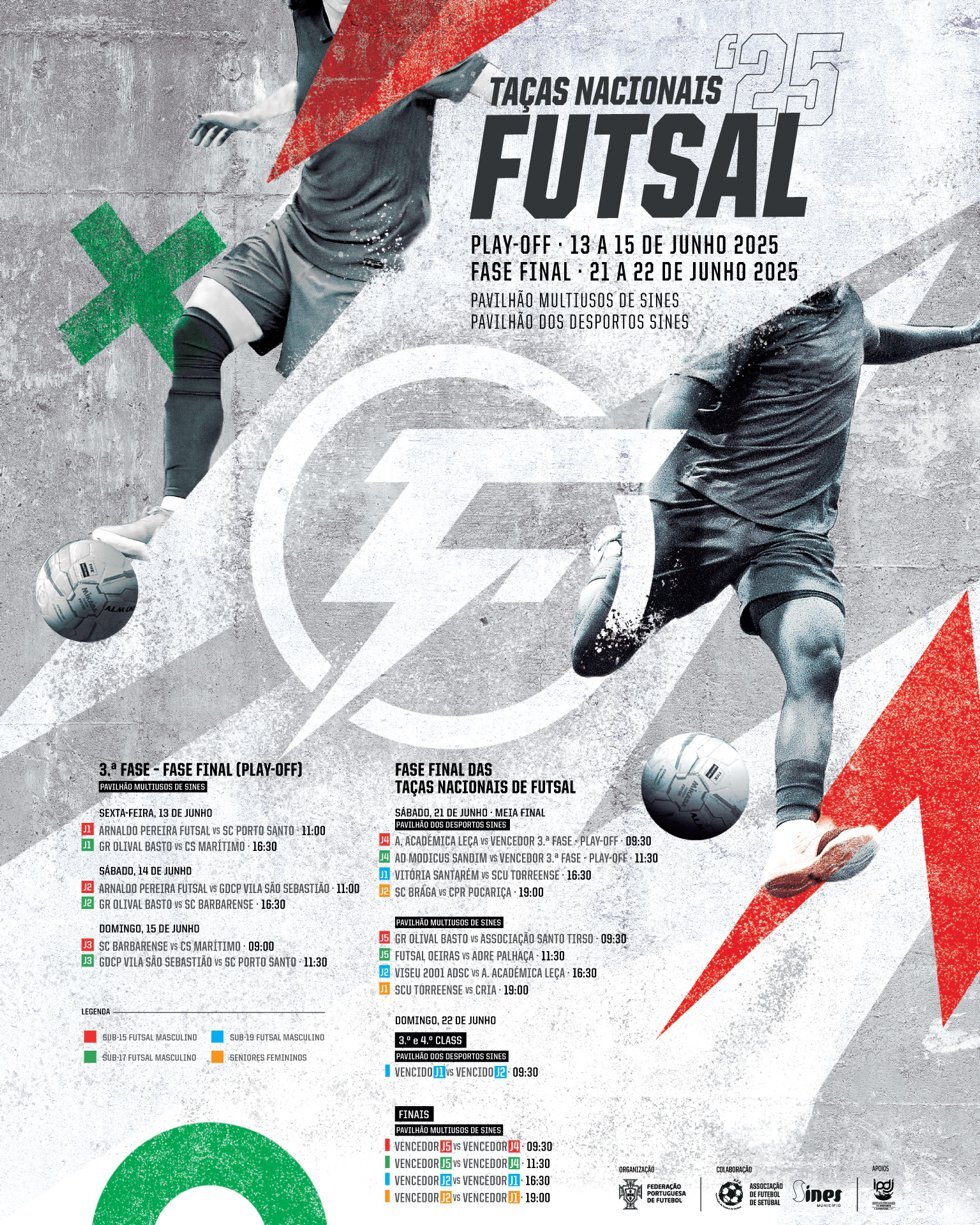 O Pavilhão Multiusos de Sines e o Pavilhão dos Desportos recebem de 13 a 22 de junho as Taças Nacionais de Futsal '25.