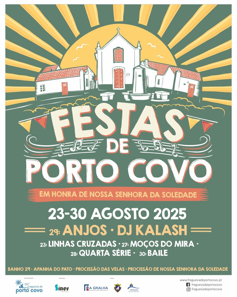 As Festas de Porto Covo, em honra de Nossa Senhora da Soledade, realizam-se de 23 a 30 de agosto, com música, devoção e tradição.