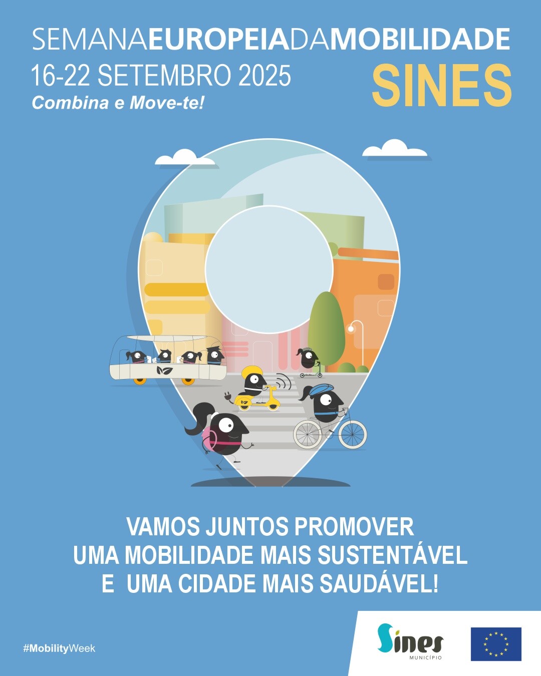 A Câmara Municipal de Sines assinala a Semana Europeia da Mobilidade 2025, de 17 a 19 de setembro, para promoção de uma mobilidade mais sustentável e uma cidade mais saudável.