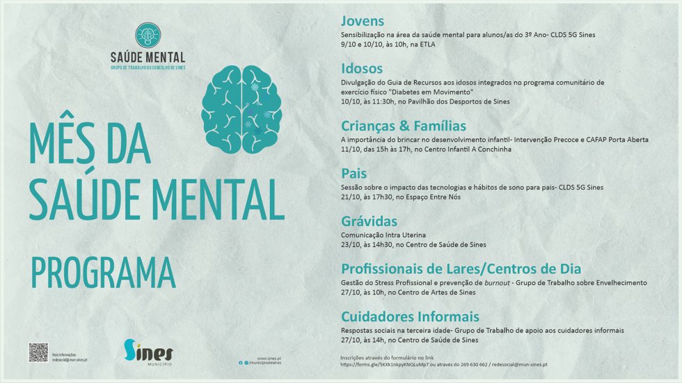 O Grupo de Trabalho da Rede Social de Sines para a Saúde Mental volta a assinalar o Mês da Saúde Mental, em outubro.