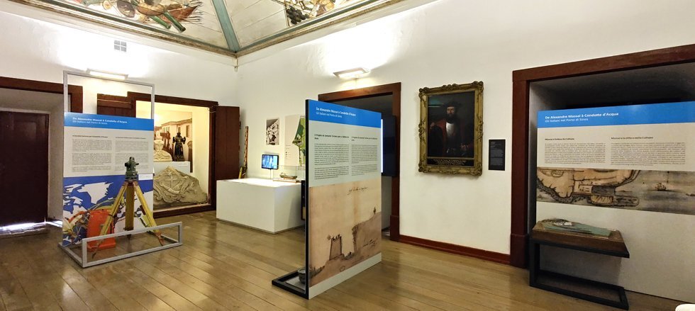 Da presença romana aos projetos de Alexandre Massai e Filipe Terzi em finais do século XVI, culminando no papel desempenhado pela empresa Condotte na construção do porto de águas profundas, a partir dos anos 70 do século XX, a exposição recorda as marcas profundas que os italianos deixaram no concelho.