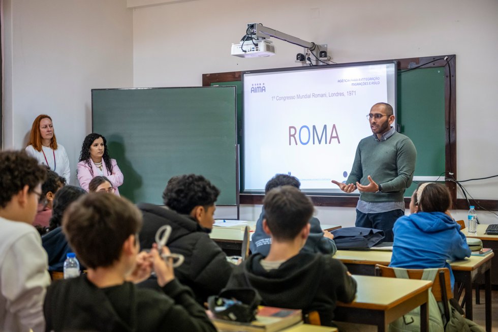 A primeira iniciativa, dia 24 de março, na Escola Secundária Poeta Al Berto, foi uma palestra para alunos, um momento de partilha sobre a cultura cigana, enriquecido pela perspetiva muito pessoal do formador, membro desta comunidade.