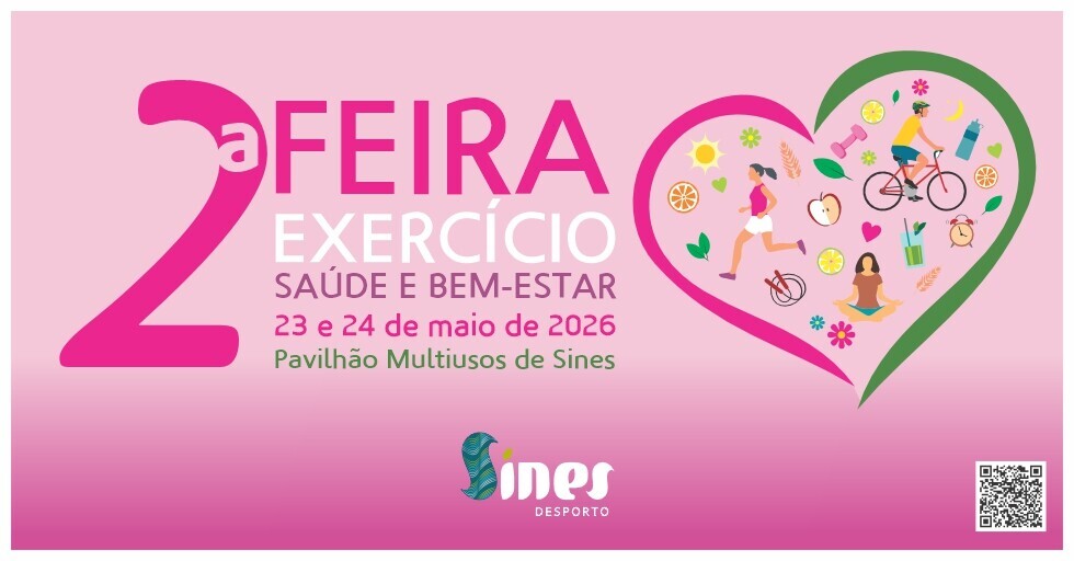 O Pavilhão Multiusos de Sines recebe, nos dias 23 e 24 de maio de 2026, a segunda edição da Feira Exercício, Saúde e Bem-Estar, um evento inteiramente dedicado à promoção da atividade física e de hábitos de vida saudáveis, com a presença de diversos expositores ligados às áreas do exercício, saúde e bem-estar.