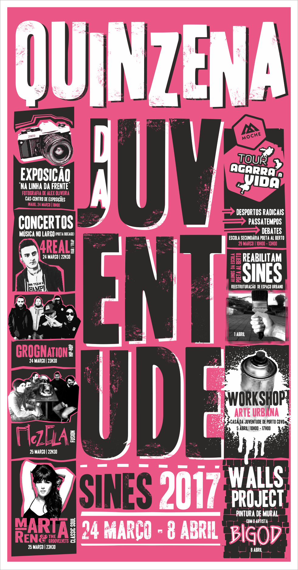 Concertos de 4Real, GROGnation, Mezcla e Marta Ren & The Groovelvets são os destaques da edição de 2017 da Quinzena da Juventude em Sines, que decorre entre 24 de março e 8 de abril.