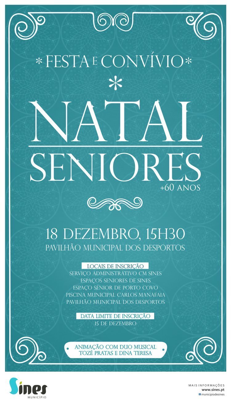A Câmara Municipal de Sines organiza a 18 de dezembro, às 15h30, no Pavilhão dos Desportos, mais uma edição da sua festa-convívio de Natal para a população com mais de 60 anos.