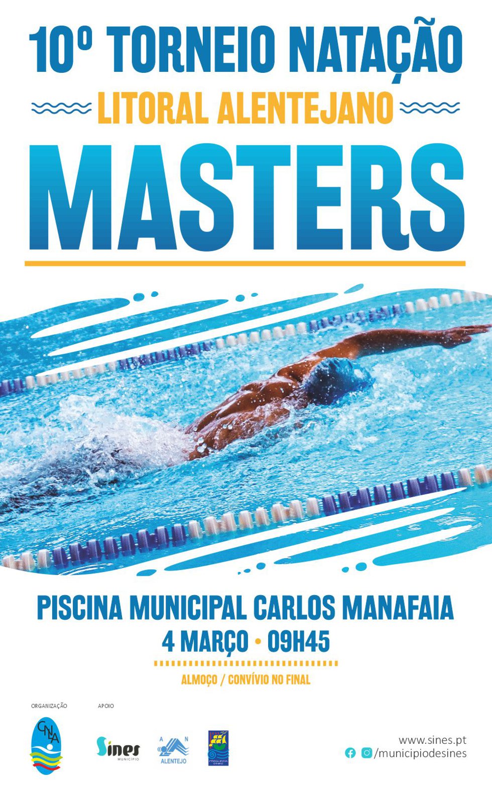 Piscina Municipal Carlos Manafaia | 9h45 | Org. CNLA. Apoios CM Sines, JF Sines, ANAlentejo