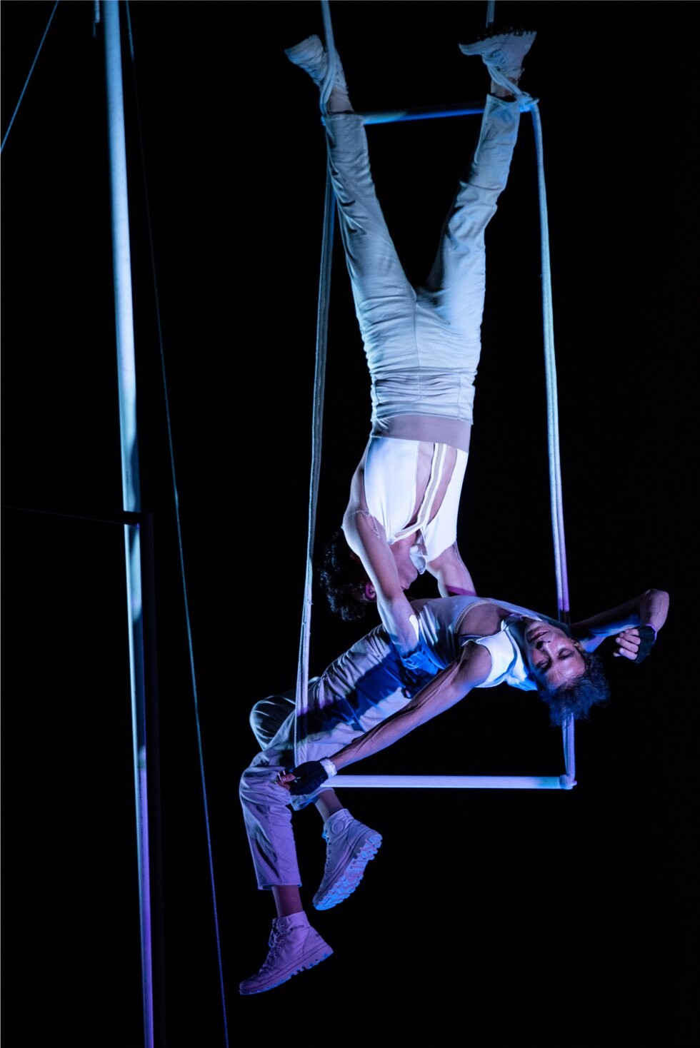 Dois intérpretes. O plural e o singular. O ser multiplicado, estilhaçado. Nos compartimentos da casa-corpo, presença e ausência. Ambos são um e o outro ao mesmo tempo. Luz e sombra. Como uma imagem arrastada no papel fotográfico dos dias, que procura a imaginária alquimia da unidade das coisas.
