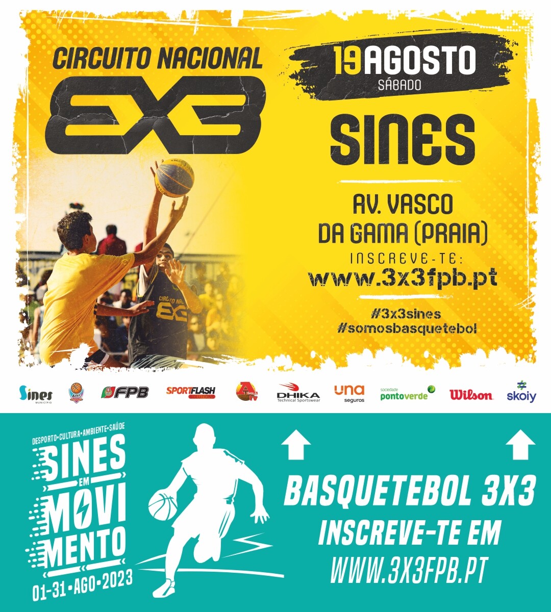 Sines recebe no dia 19 de agosto, a partir das 10h00, na Avenida Vasco da Gama, uma etapa do Circuito Nacional 3x3 FPB | FIBA.