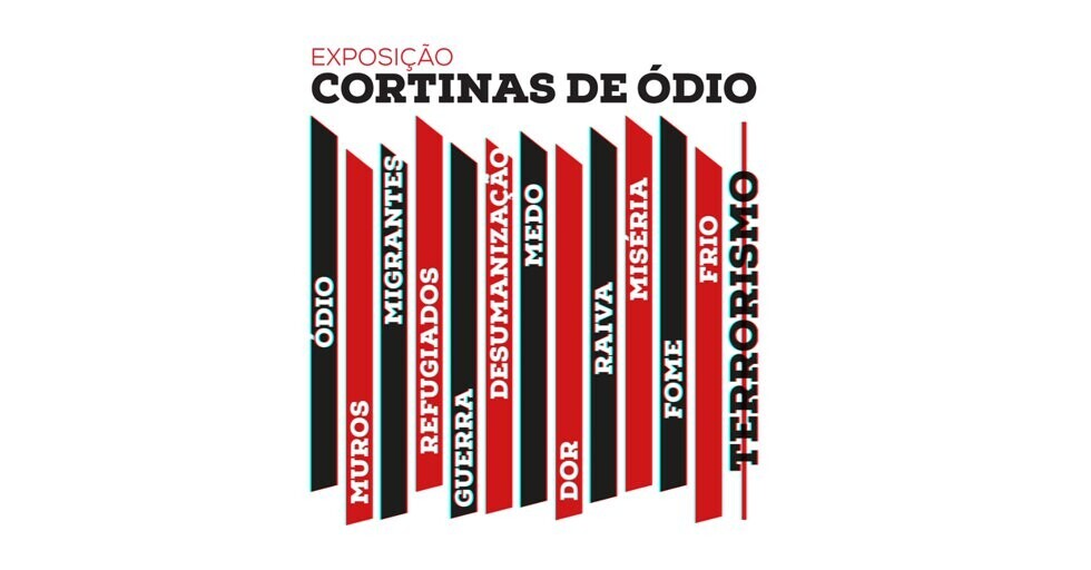 As Cortinas de Ódio crescem na mesma medida do medo. Medo do imigrante. Medo do refugiado. Medo do terrorista. Medo do OUTRO. Medo de TUDO. O medo constrói cada vez mais muros! Exposição cedida pela Biblioteca Municipal Ary dos Santos.