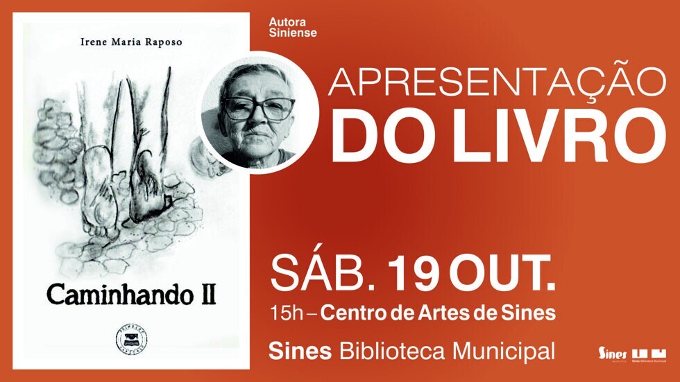 A autora siniense Irene Raposo apresenta o seu livro "Caminhando II", este sábado, 19 de outubro, às 15h00, na cafetaria do Centro de Artes de Sines.