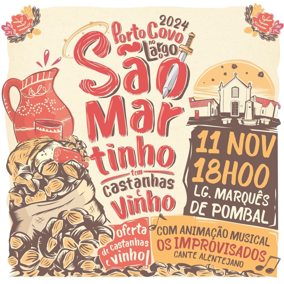 Oferta de castanhas assadas e água-pé. Animação musical com cante alentejano pelo grupo Os improvisados.