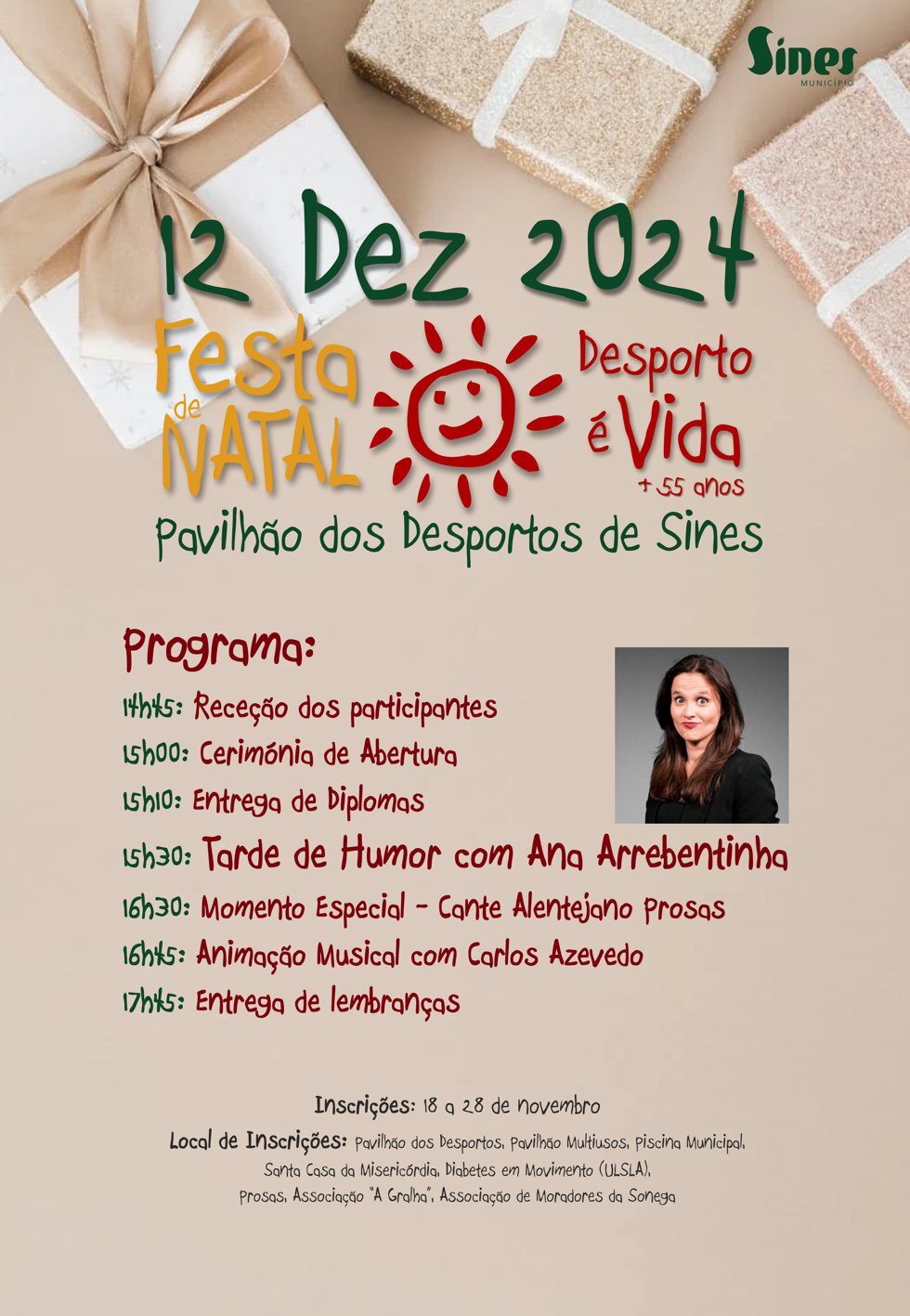 O programa municipal Desporto é Vida +55 Anos realiza a sua festa de Natal no dia 12 de dezembro, a partir das 14h45, no Pavilhão dos Desportos.