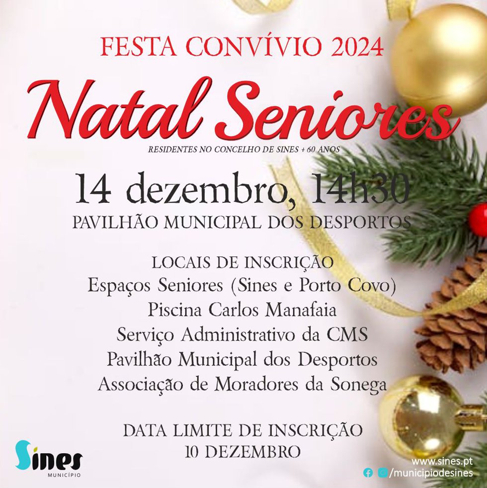 Inscrições até 10 de dezembro nos espaços seniores municipais, Piscina Municipal Carlos Manafaia, Câmara Municipal de Sines, Pavilhão dos Desportos e Associação de Moradores da Sonega.