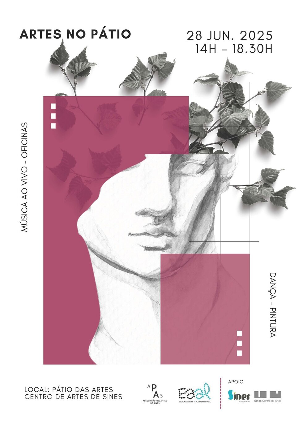 A Escola das Artes do Alentejo Litoral, com o apoio da Câmara Municipal de Sines, organiza no próximo sábado, 28 de junho, uma tarde dedicada às artes no Pátio das Artes.