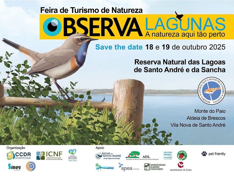 O Monte do Paio – Centro Nacional de Educação Ambiental e Conservação acolhe a terceira edição da feira de turismo de natureza que dá a conhecer o património da Reserva Natural das Lagoas de Santo André e da Sancha. Ao longo do fim-de-semana realizam-se várias atividades que vão permitir conhecer melhor esta área protegida situada nos concelhos de Sines e Santiago do Cacém. Estão previstas ações para observação e anilhagem de aves, workshops, palestras, caminhadas interpretativas, atividades para crianças, animação musical e um mercadinho de produtos locais.