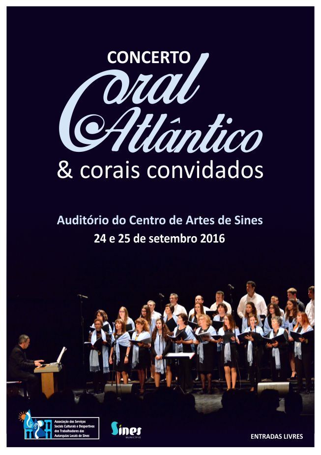 A edição de 2016 do encontro de coros "Coral Atlântico & Coros Convidados” decorre nos dias 24 e 25 de setembro, no auditório do Centro de Artes de Sines. A entrada é livre.