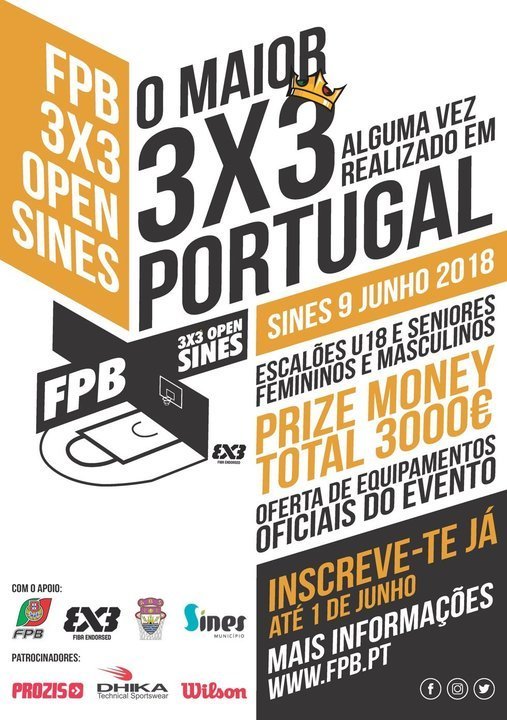 A Av. Vasco da Gama, em Sines, recebe, no dia 9 de junho, entre as 10h30 e as 20h30, o FPB 3x3 Open Sines, "o maior 3x3 alguma vez realizado em Portugal".