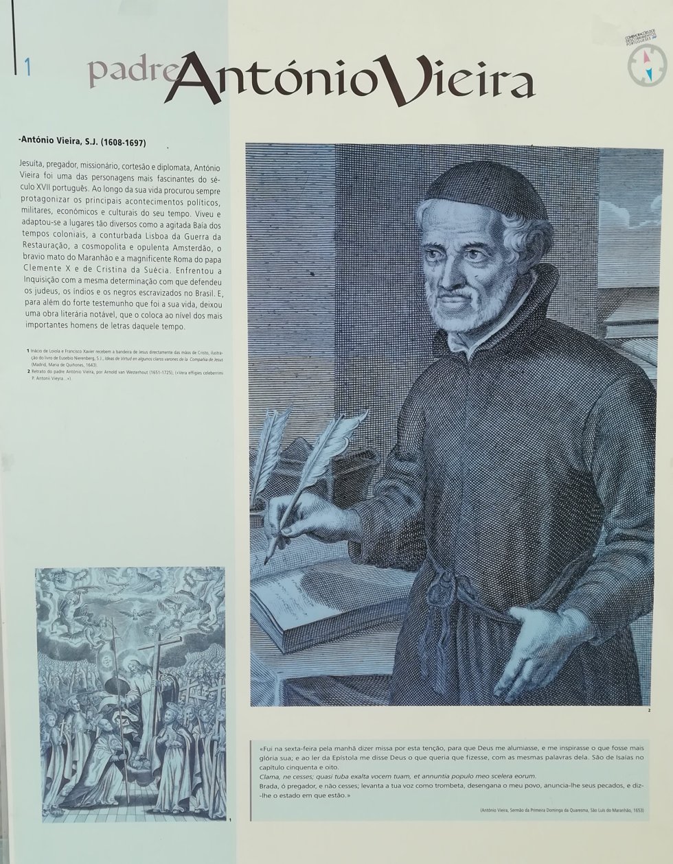 Padre António Vieira (1608-1697) foi jesuíta, pregador, missionário, diplomata e escritor. Ao longo da sua vida procurou sempre protagonizar os principais acontecimentos do seu tempo. Enfrentou a Inquisição com a mesma determinação com que defendeu os judeus, os índios e os negros escravizados no Brasil. Para além do forte testemunho que foi a sua vida, deixou uma obra literária notável, ao nível das mais importantes do seu tempo.