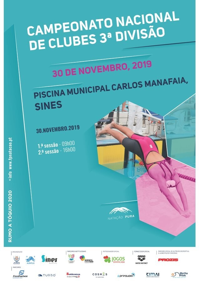 Piscina Municipal Carlos Manafaia | 9h00 (1.ª sessão), 16h00 (2.ª sessão) | Entrada livre | Org. Federação Portuguesa de Natação, ANALENTEJO, Câmara Municipal de Sines