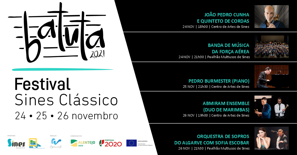 Sines acolhe, de 24 a 26 de novembro de 2021, a segunda edição do Festival Batuta, dedicado à música clássica. Esta edição está integrada nas Comemorações dos 659 anos do Município de Sines.
